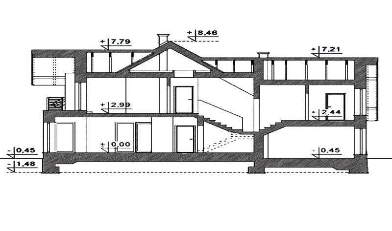 - Высота помещений: 1 этажа - 2,80 м, 2 этажа - от 1,45 до 3,20 м