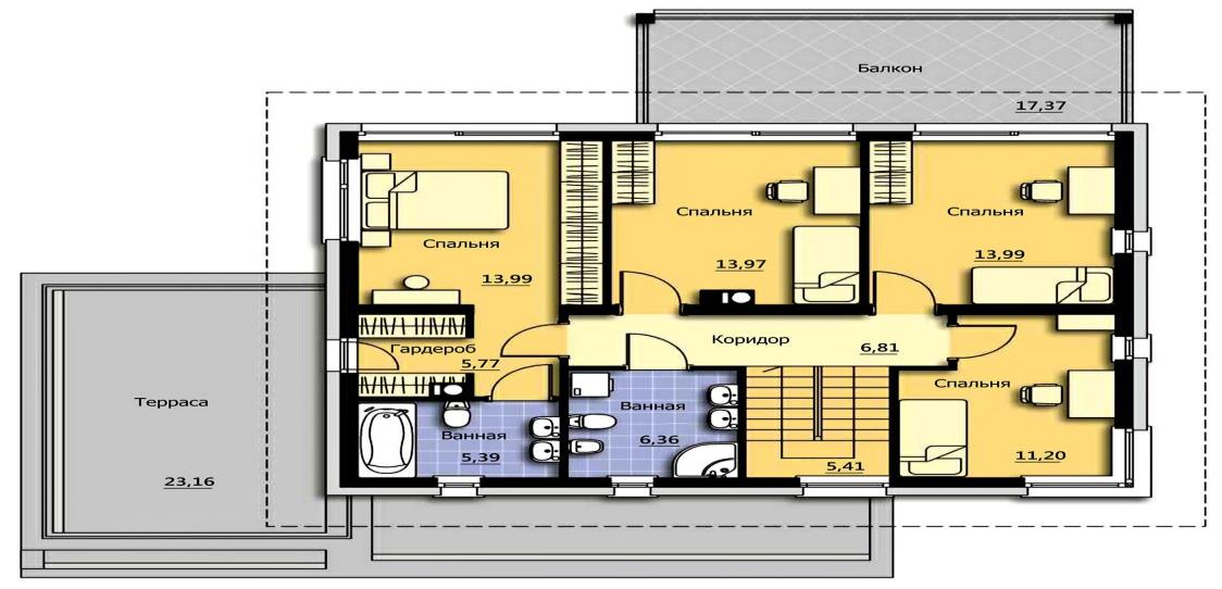 Проект А-118 (балконы и террасы входят в стоимость) дом Каркасный