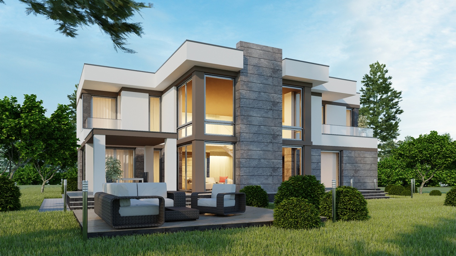 - Внешняя отделка: фиброцементные панели CEDRAL (Бельгия)