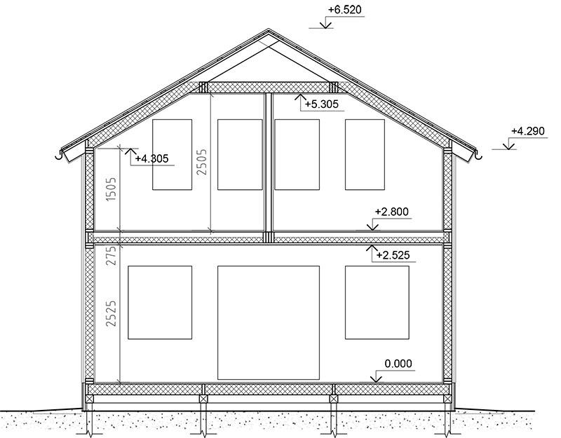 - Высота помещений: 1 этажа - 2,52 м, 2 этажа – 2,50 м