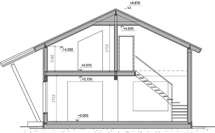 - Высота помещений: 1 этажа - 2,70 м, 2 этажа – от 1,70 до 3,20 м