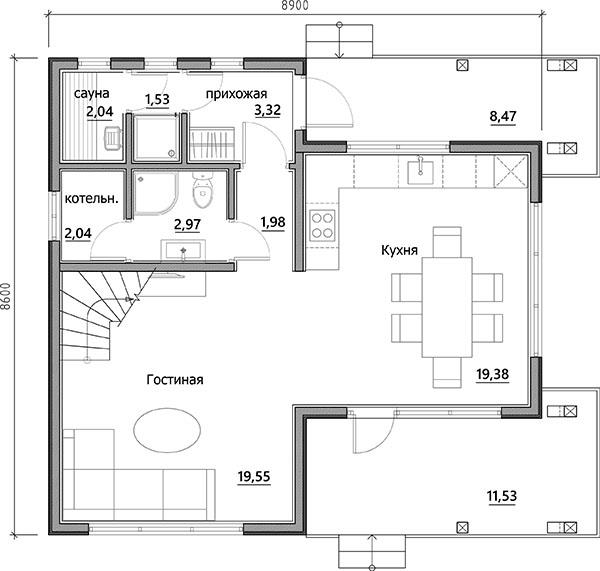 Проект А-83 (без терассы) дом каркасный