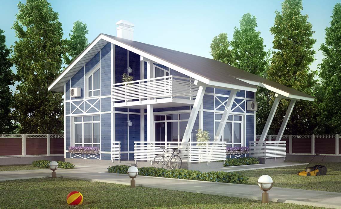 Проект А-128 (балконы и террасы входят в стоимость) дом каркасный
